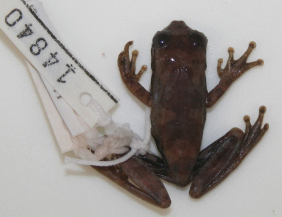 Hyla koechlini Duellman & Trueb, 1989 (Nome atual: Dendropsophus koechlini) Parátipo ZUEC AMP 14840 Foto: Nelson Rodrigues da Silva Termos de uso Voltar