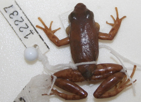 Hylodes amnicola Pombal, Feio & Haddad, 2002 Parátipo ZUEC AMP 12237 Foto: Nelson Rodrigues da Silva Termos de uso Voltar